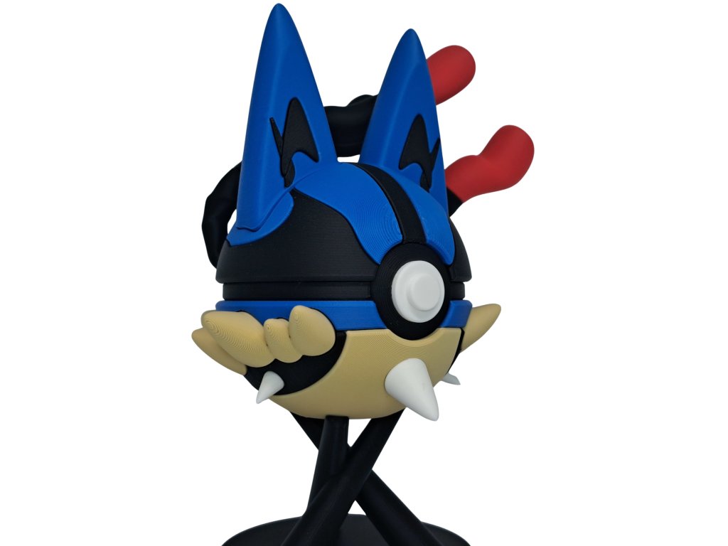 Plastový 3D tisk navržený ve stylu Mega Lucario.
